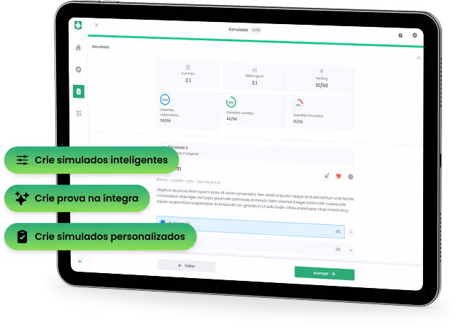 Aulas e materiais de apoio objetivos para teoria, treinamento focado em questões para a prática e revisões 100% direcionadas para corrigir fragilidades.