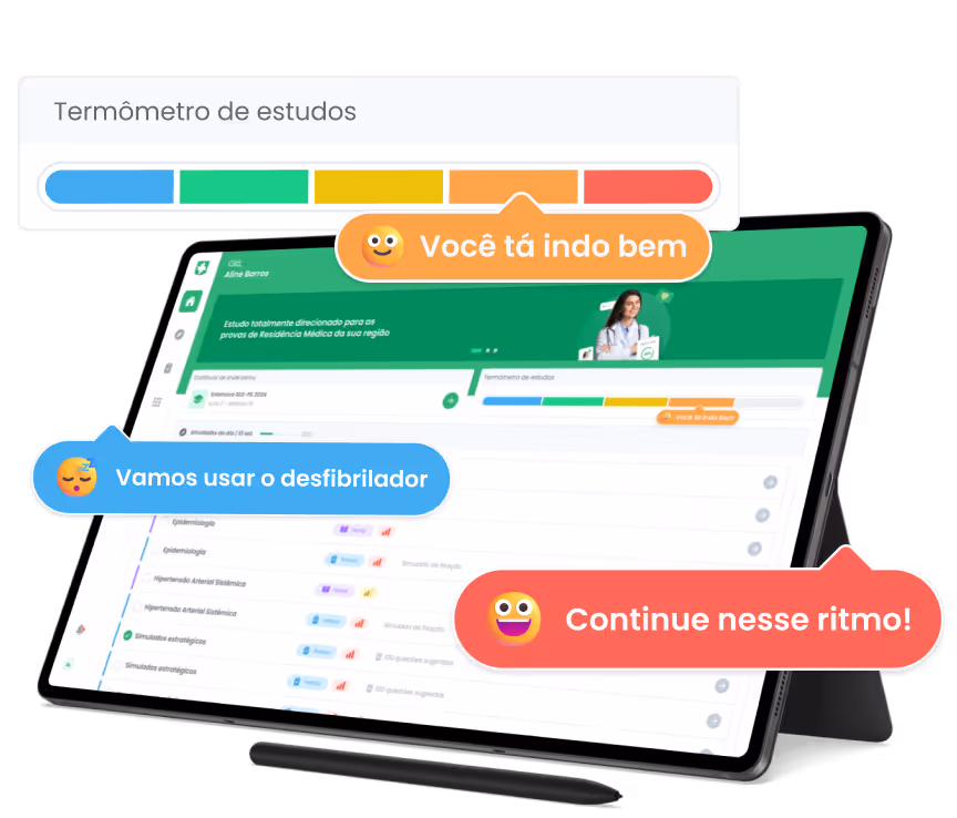Não sabe se está no caminho certo? O Termômetro de Estudos chegou para ajudar! Ele vai indicar como está a sua frequência de estudos e te manter motivado a atingir seus objetivos. Mas lembre-se, não basta apenas fazer as atividades, sua performance também é muito importante para alcançar o sucesso na aprovação.