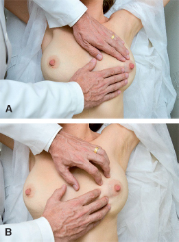 Para a palpação das mamas, podem ser utilizadas as técnicas de Velpeaux ou Bloodgood.