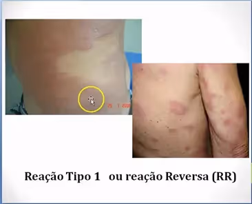 As reações hansênicas são uma complicação comum da hanseníase que ocorre como resultado de uma resposta imunológica do organismo à presença da bactéria Mycobacterium leprae. Essas reações podem ocorrer tanto em pacientes em tratamento quanto em pacientes já considerados curados, e podem manifestar-se de forma aguda ou crônica. Existem 2 principais apresentações: Tipo 1 (Reversa) e tipo 2 (eritema nodoso).