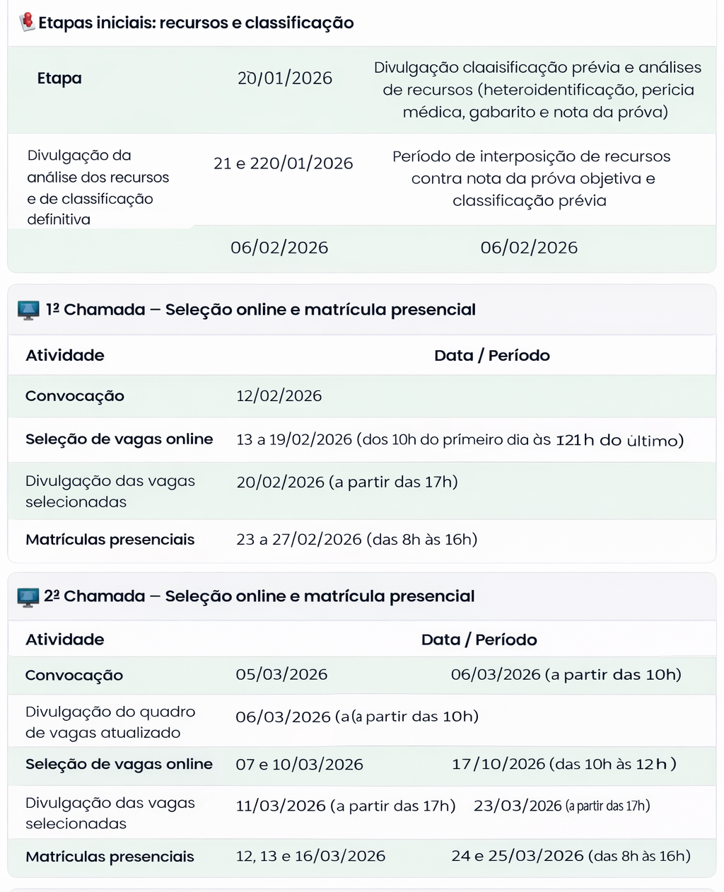 O não cumprimento de qualquer etapa dentro do período estabelecido implica perda automática da vaga, sem possibilidade de reversão. Por isso, acompanhar cada publicação oficial é indispensável.